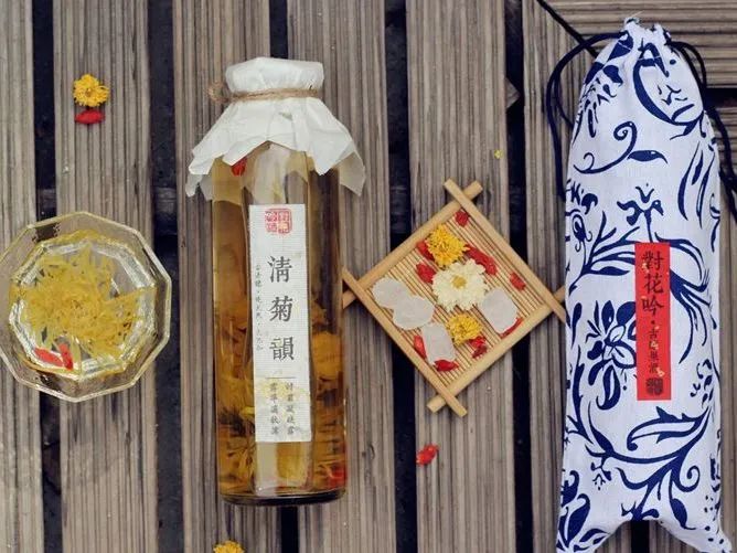 2.食品,如菊花餅、菊花酒、菊花糕、菊花蛋酥等。