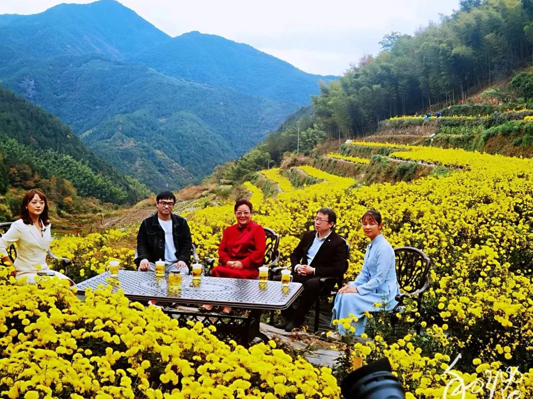 第七批全國老中醫(yī)藥專家學(xué)術(shù)經(jīng)驗繼承工作者指導(dǎo)老師倪京麗帶領(lǐng)工作室成員陳海濤、羅曉風(fēng)于葉平頭村皇菊種植基地完成《養(yǎng)生談》欄目錄制,向觀眾朋友們介紹皇菊的功效及食養(yǎng)妙用。