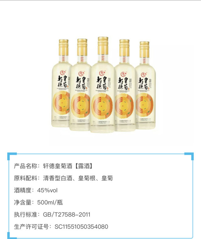 配料:清香型白酒、皇菊根、皇菊